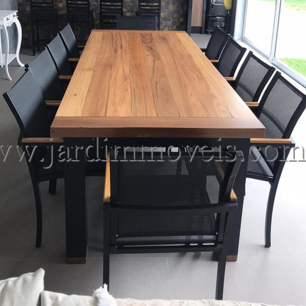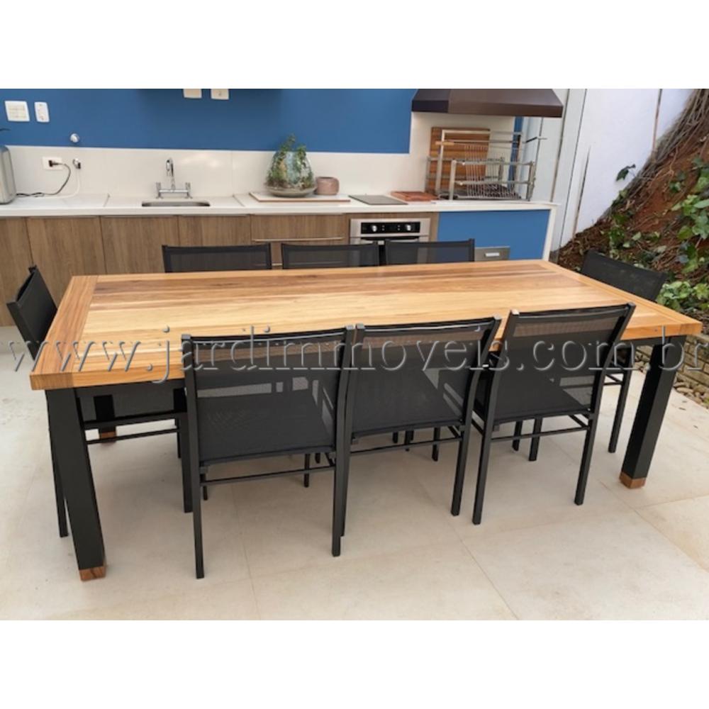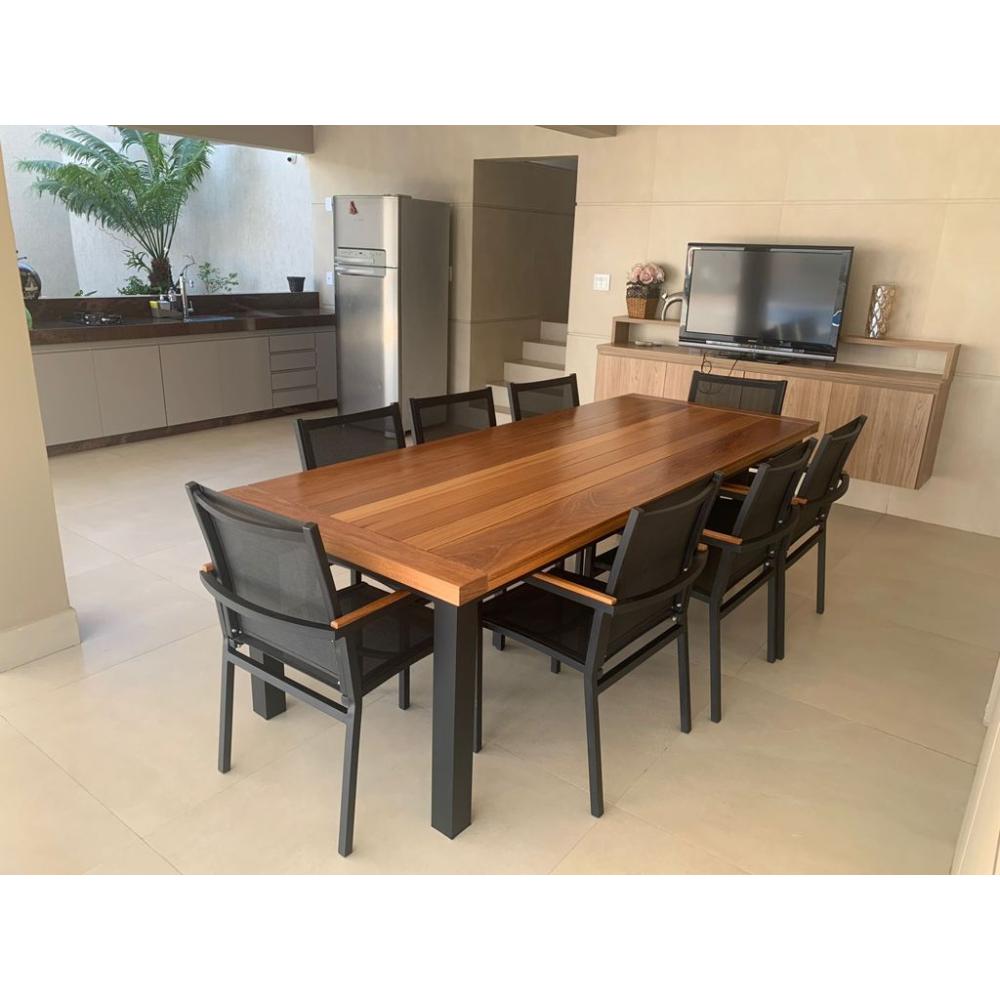 Conjunto composto por 08 poltronas e 01 mesa 2,50x1,00m tampo madeira maciça freijó