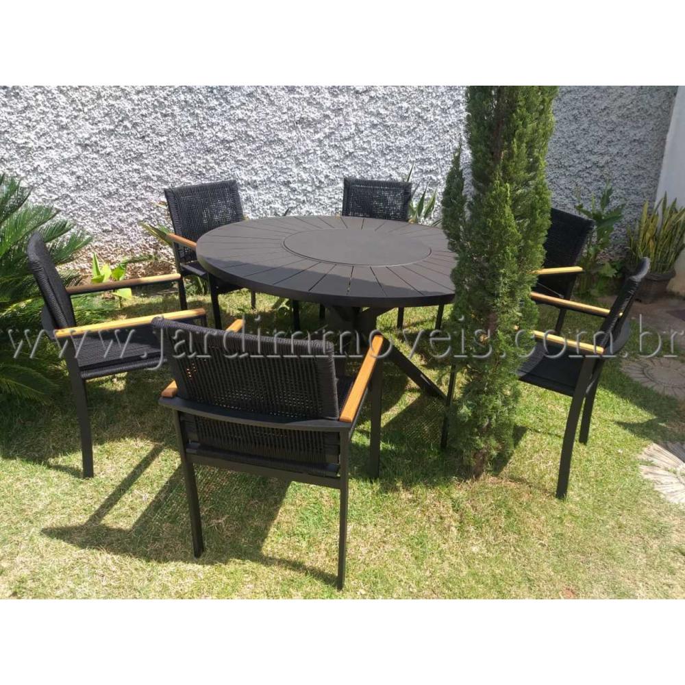 Conjunto composto por 06 poltronas e 01 mesa 1,50m tampo alumínio com giratório central .