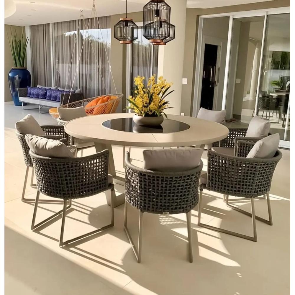 Conjunto composto por 08 poltronas e 1 mesa 1,80cm tampo chapa