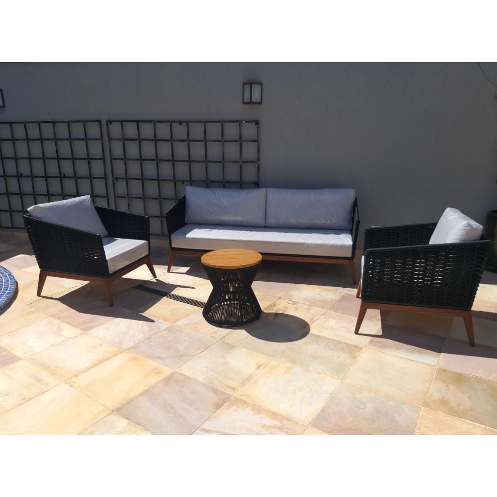 Conjunto composto por 02 poltronas 90x85cm,01 sofá 2 lugares 1,50x85cm e 01 mesa centro 45x45x45cm