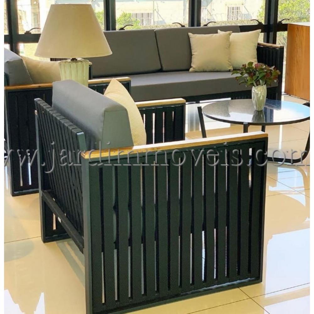 Conjunto composto por 02 poltronas 90x85cm,01 sofá 3 lugares 2,00x85cm e 01 mesa centro 90x70cm