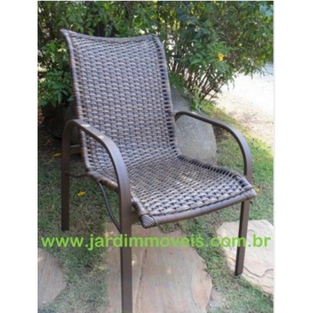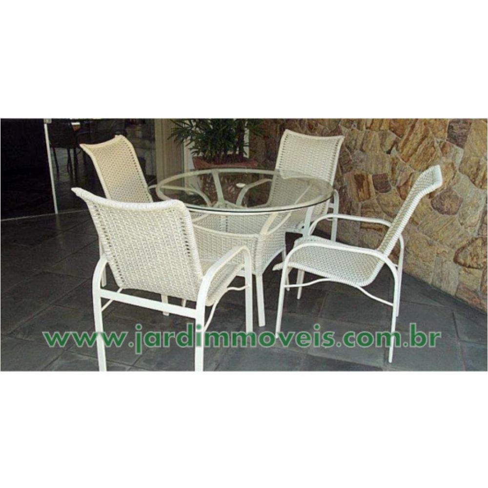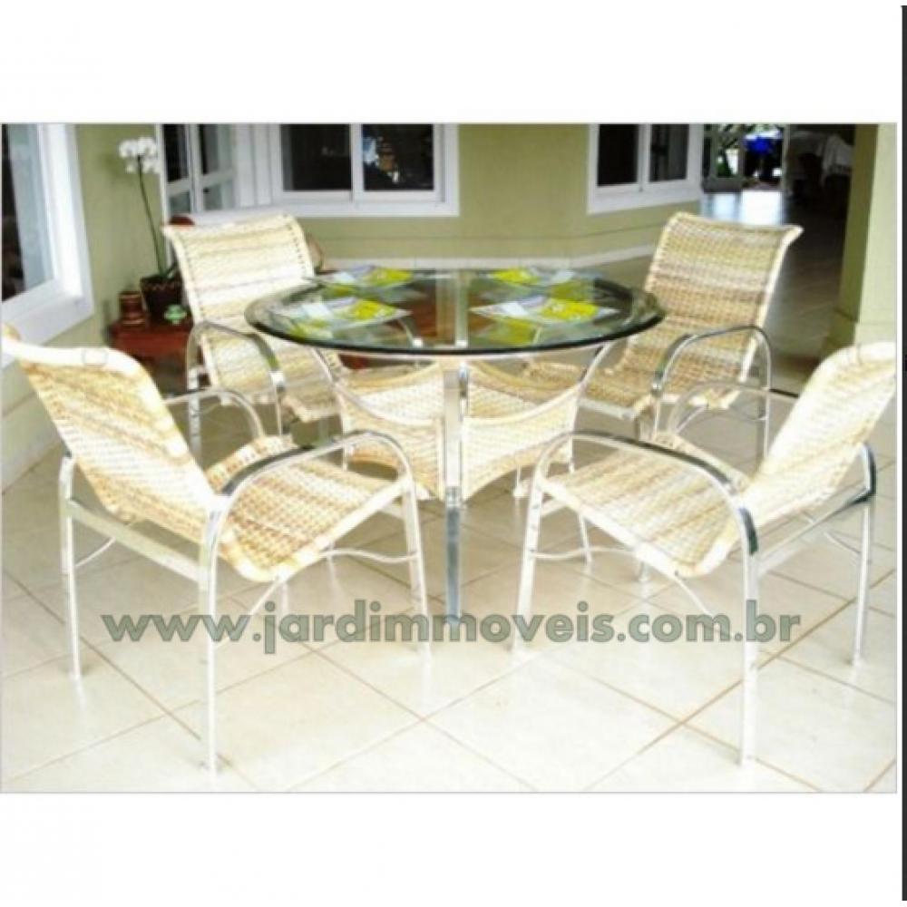 Conjunto composto por 04 Poltronas e 01 mesa com tampo em vidro 8mm