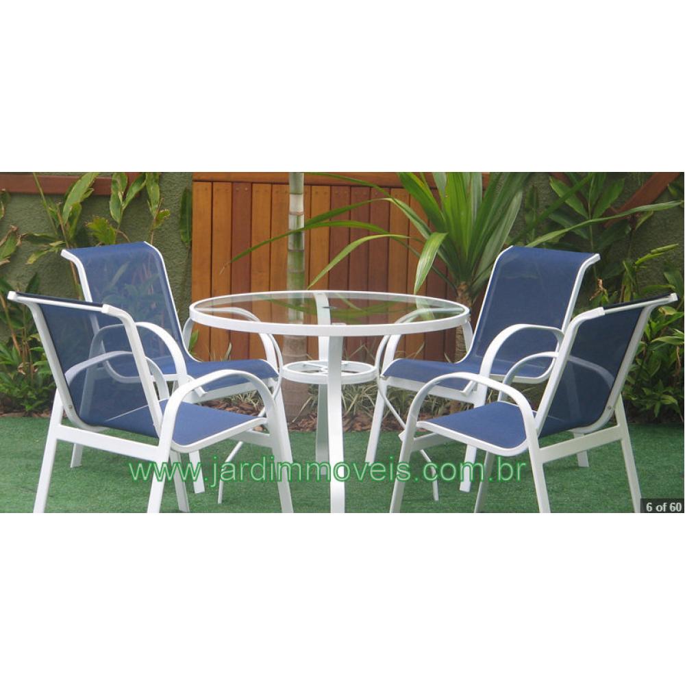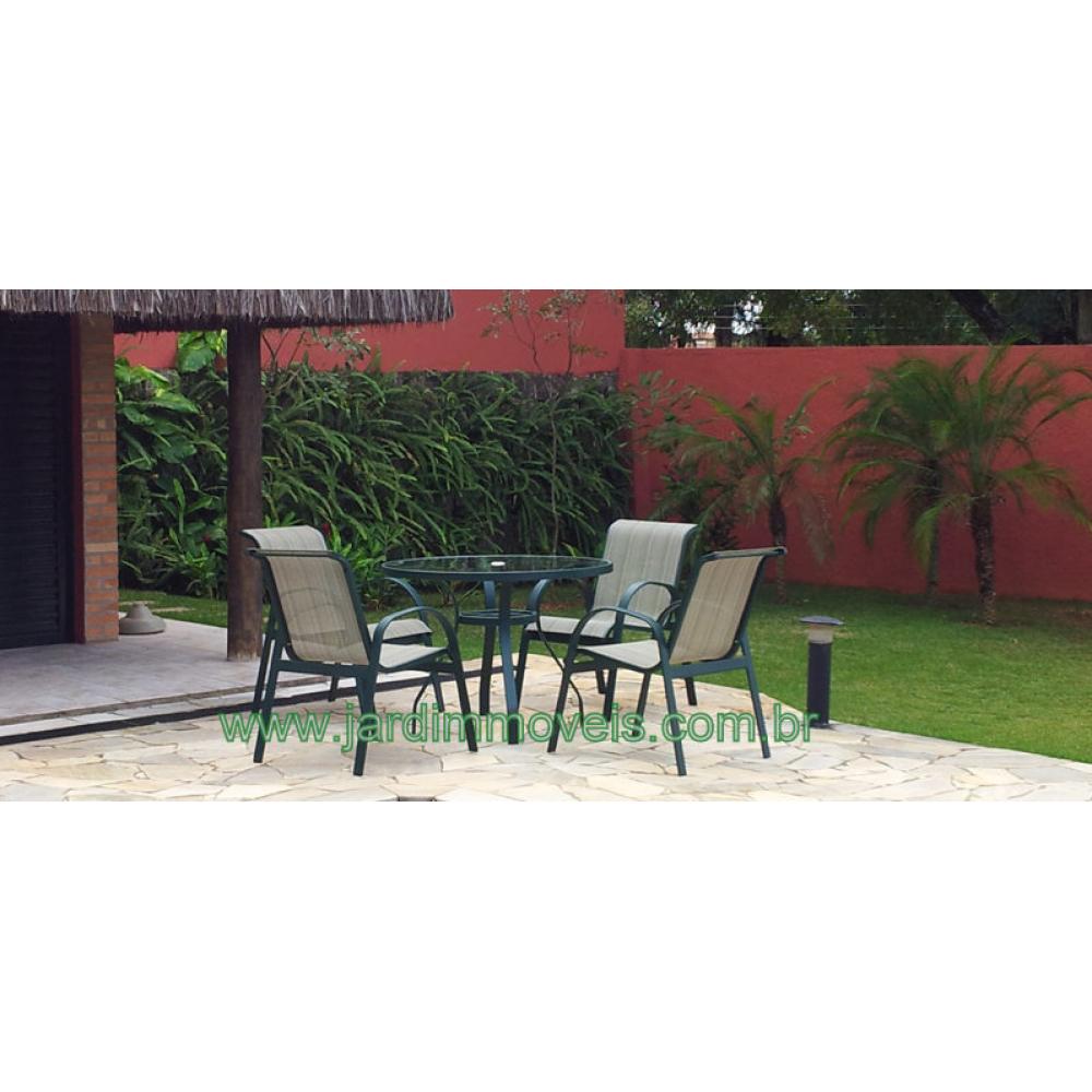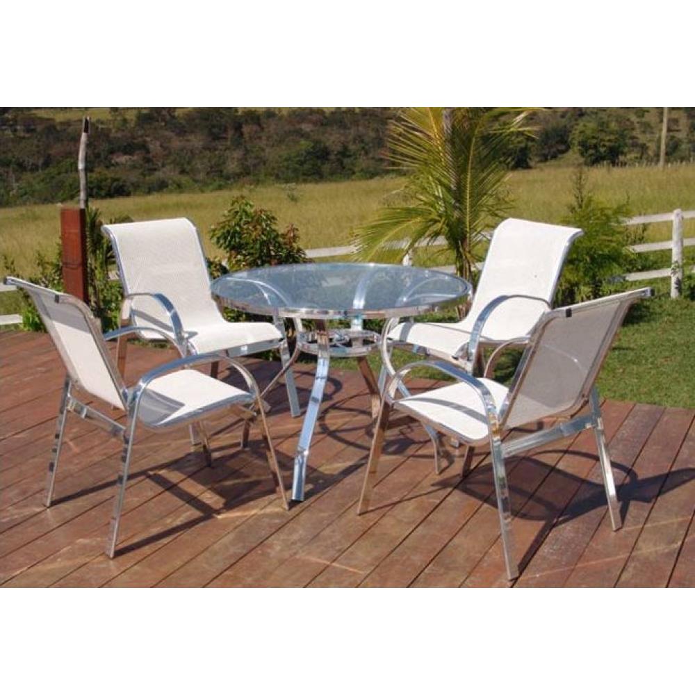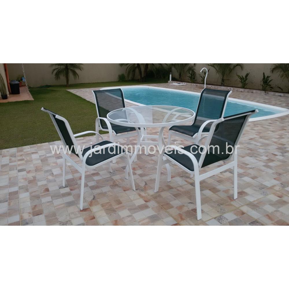 Conjunto composto por 4 poltronas / 1 mesa com tampo em vidro 8mm