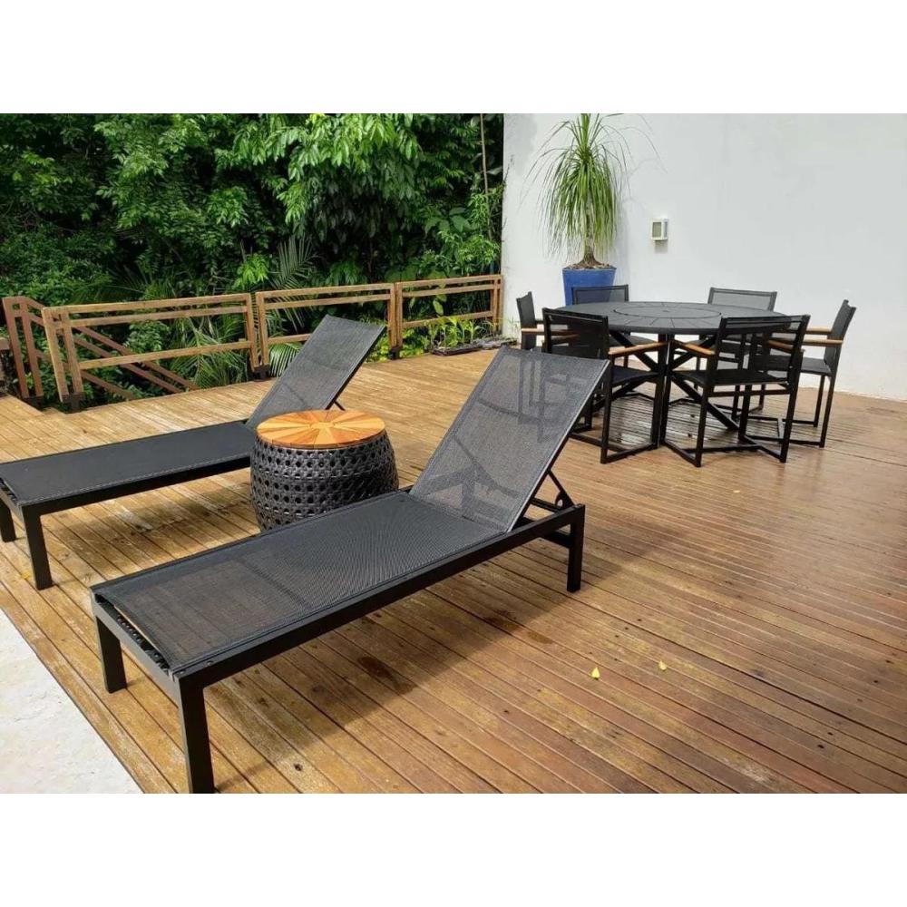 Medidas ; 60 200 32 Peso aproximado: 15,00kg Estrutura feita em perfil de alumínio 2/1¨ e soldada nos processos TIG Acabamento da estrutura em pintura eletrostática ou polimento Tela de PVC altamente resistentes a raios U.V. Fabricamos sob medidas Suporta até 180kg(usando adequadamente) Itens inclusos ; 01 Espreguiçadeira Montreal Imagem meramente ilustrativa; Almofada e mesa lateral não inclusa