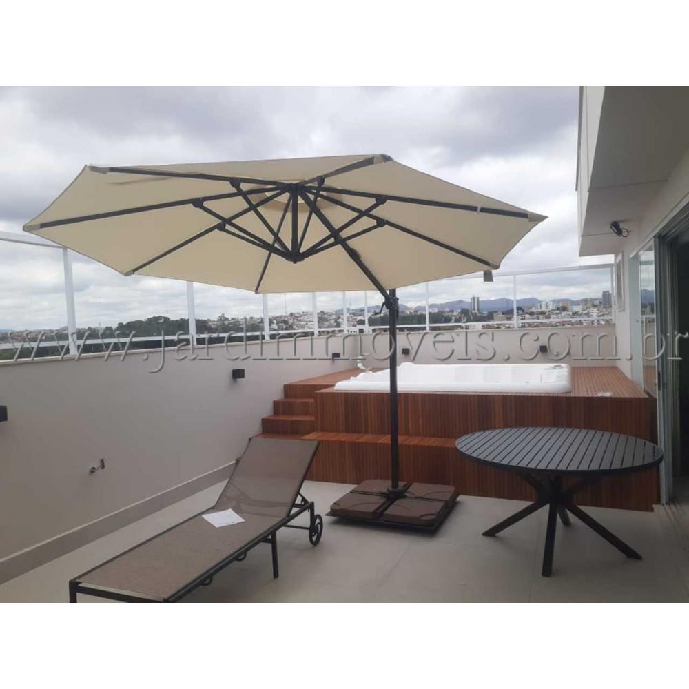 Acabamento em alumínio anodizado e pintura eletrostática. Cobertura especial com filtro de raios U.V, articulações em nylon e ABS, sistema de alavanca facilita abertura e fechamento.