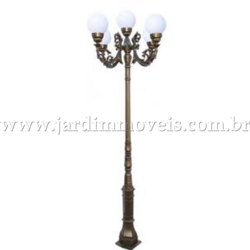 Alt: 2,55 m Base: 25x25 cm D. Braços: 70x70 cm Globo: 10x20 cm Possui alojamento para reator